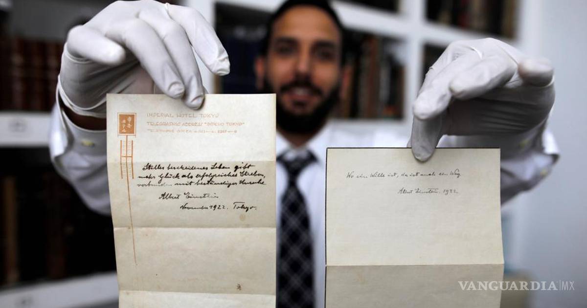 Dos notas manuscritas con la firma de Albert Einstein, que el científico dejó a un mensajero japonés como propina poco después de enterarse de que se le había concedido el Premio Nobel de Física, serán subastadas mañana en Jerusalén.