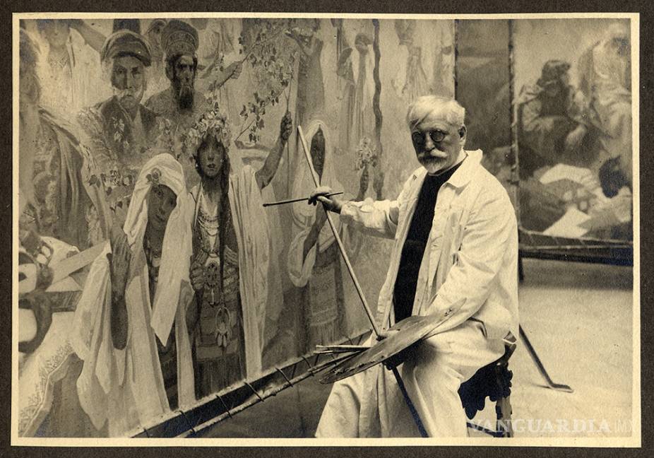 Viajó en 1906 a EU y vivió en este país pero, en realidad, el motivo de su viaje fue reunir fondos para el proyecto de su obra monumental: "La épica eslava". Una serie de 22 lienzos de gran formato -que no han viajado a Madrid- y que comienza a pintar cuando vuelve a Praga en 1911, donde explica escenas relevantes de la historia de los pueblos eslavos desde una óptica épica y ejemplarizante.
