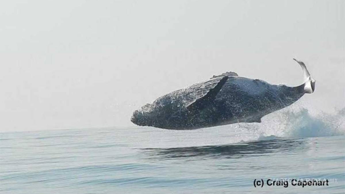 Capehart, que filmó el salto de la ballena, explicó que el ejemplar se encontraba nadando junto a su cría y calculó que pesaba unas 40 toneladas.