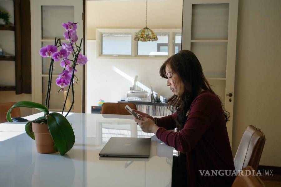 A primera vista, un visitante a la casa de Nguyen en Sacramento no sabría distinguir si ella es la doctora o la paciente. Sentada a la mesa del comedor, teclea en su iPhone entre un paciente y otro.