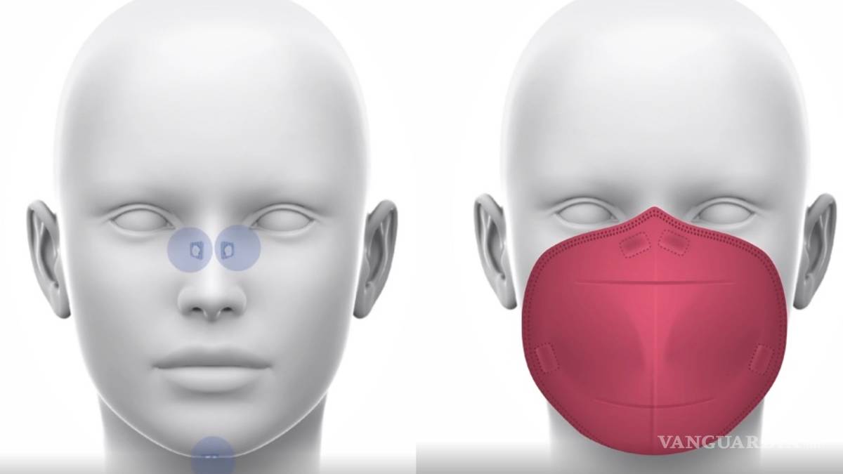 + Una de las innovaciones más destacadas es una mascarilla sin bandas elásticas que se sujeta firmemente mediante unos imanes situados en el contorno de la pieza de tela que se unen a otros imanes colocados sobre el rostro mediante unas bandas adhesivas que se sitúan sobre la nariz y en la barbilla.