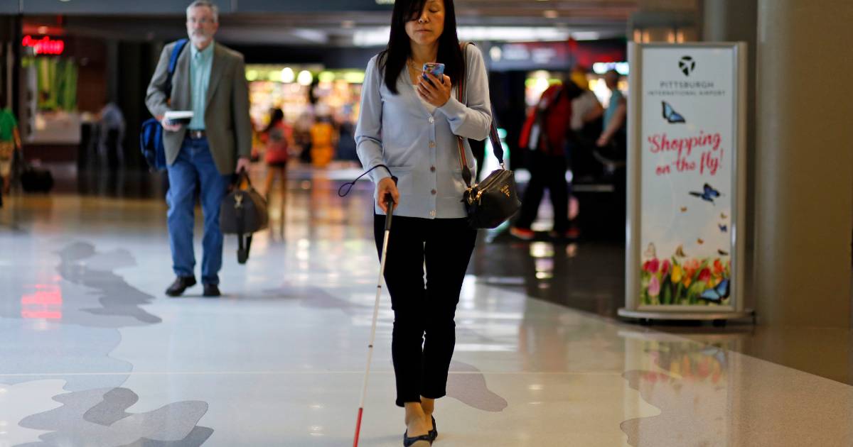 Moverse dentro de un aeropuerto puede ser complicado. Hay mucho ruido, mucha gente y no siempre están diseñados para facilitar el paso. El desafío es aún mayor para las personas con problemas visuales.
