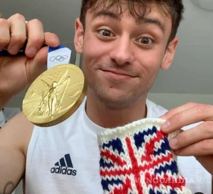 Tom Daley, el clavadista británico, ganador de la medalla de oro en salto por parejas, no deja pasar la ocasión para continuar con sus tejidos y así liberarse del estrés que le genera la competencia.