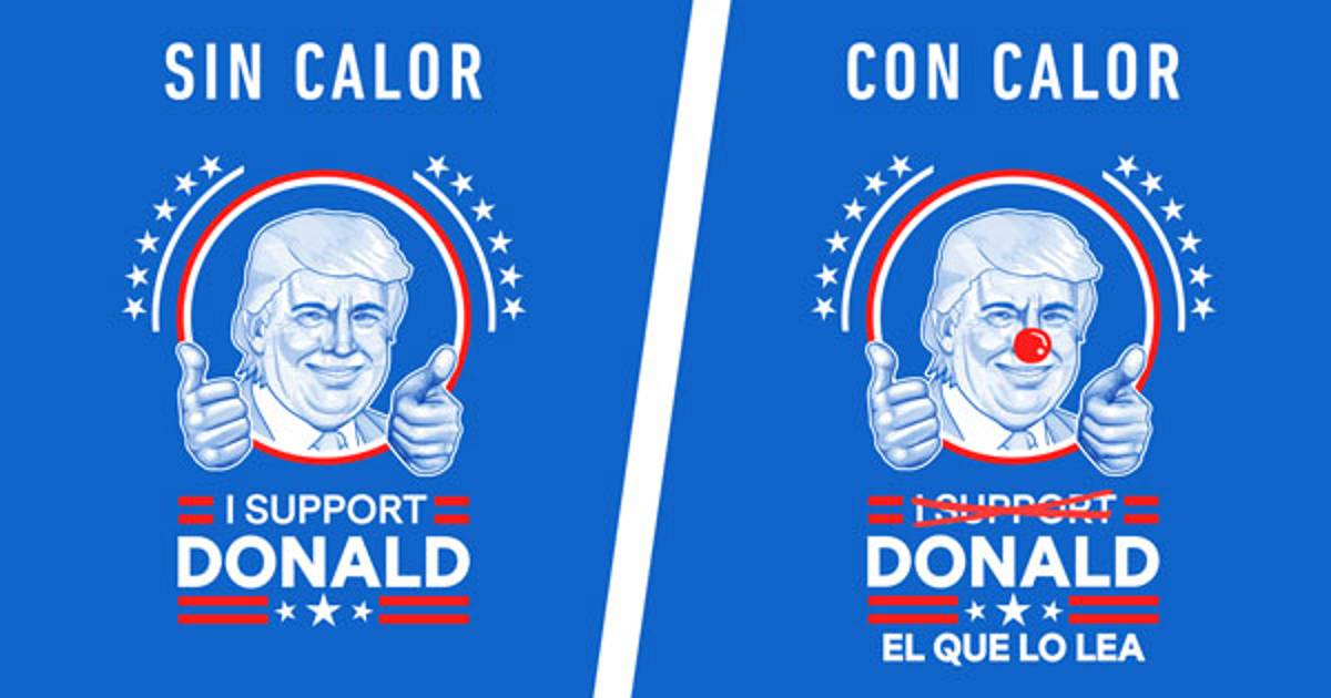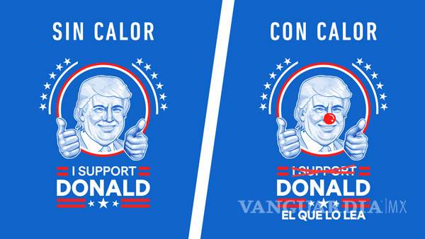 La compañía fue a Estados Unidos a vender camisetas con la leyenda “I support Donald”, pero las prendas contienen un mensaje oculto que se revela con el calor, al cambiar la frase por la de “Donald el que lo lea” y añade una nariz al candidato.