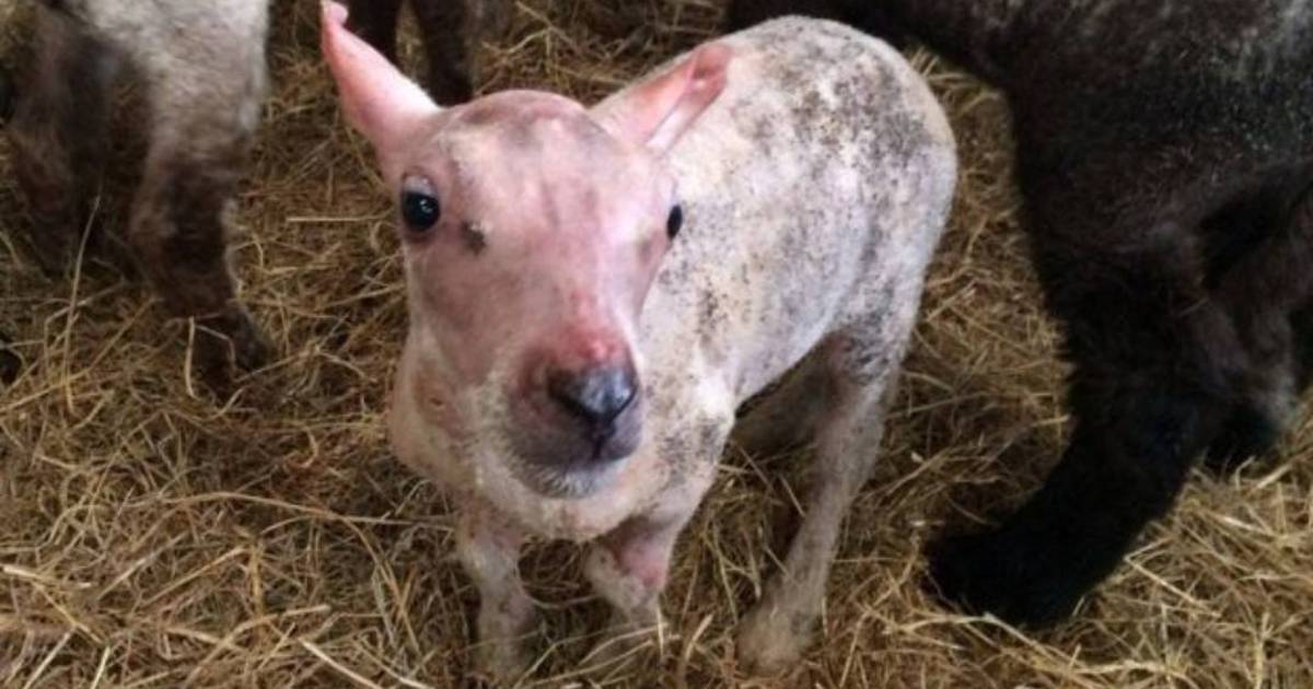 El cordero, bautizado como Skippy, nació a mediados de abril y fue rechazado por su madre, probablemente porque sufre una rara anomalía: nació completamente desnudo.