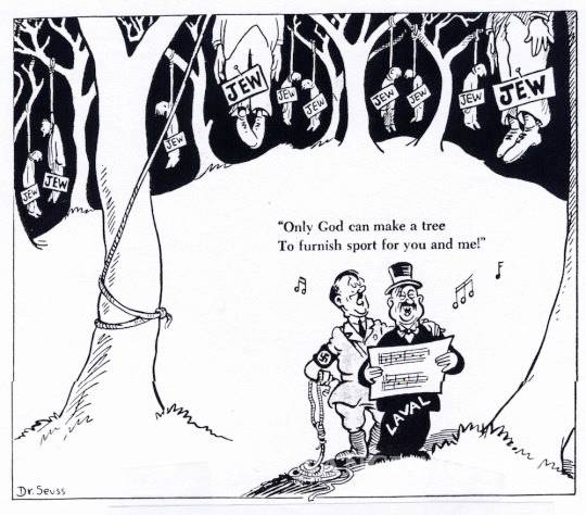 El Dr. Seuss fue descendiente de judíos alemanes y se crío en Springfield Massachusetts. Con su estilo característico, sus viñetas políticas ilustraban al dictador fascista como un científico loco o un burócrata dando órdenes a Satán, haciendo sátira de algunas de las situaciones más atroces que se vivieron durante la Segunda Guerra Mundial.