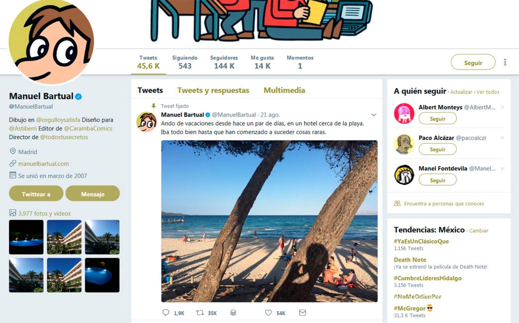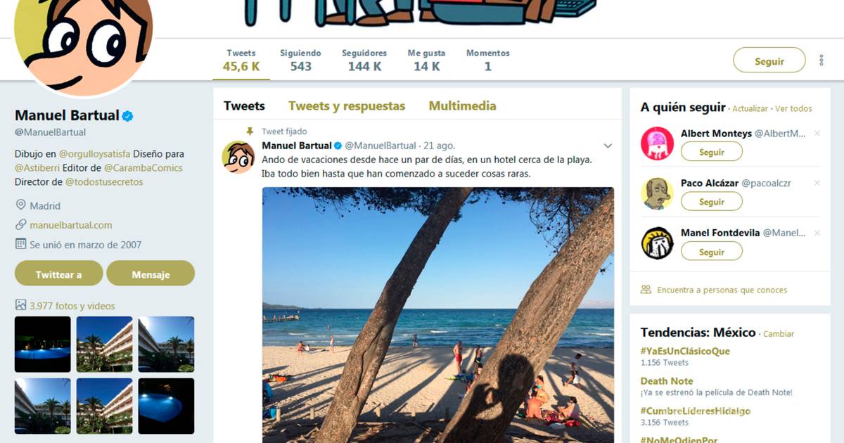 @ManuelBartual tiene en suspenso a Twitter con su enigmática estancia en el hotel de playa, habitaciones y personajes paralelos.