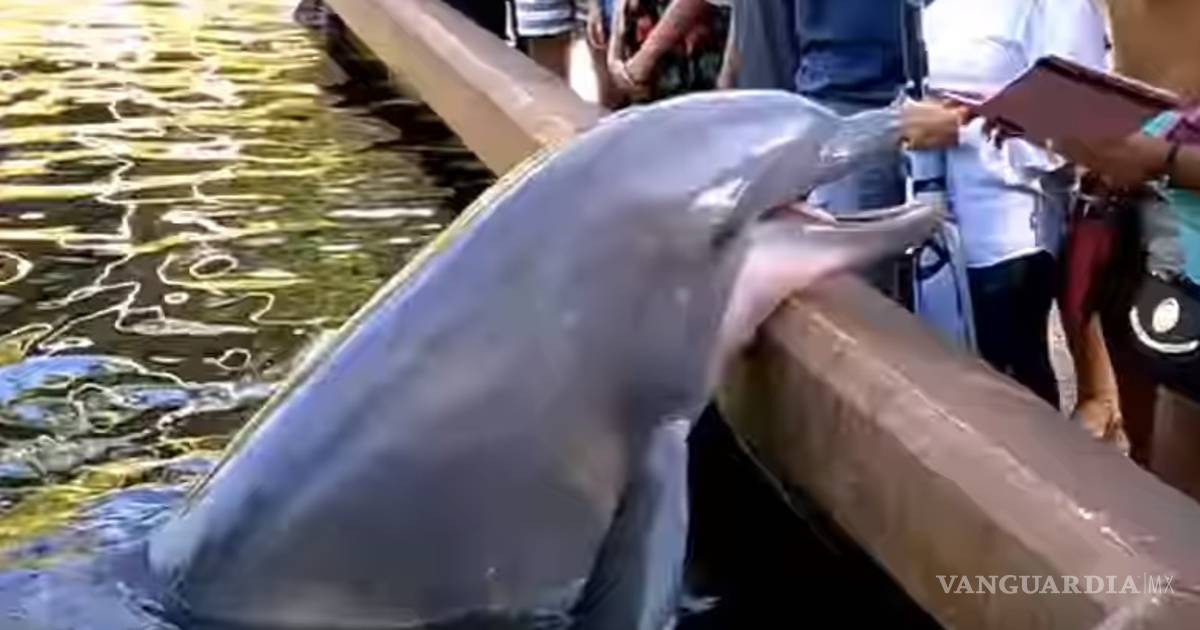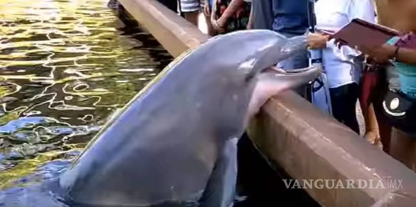 Delfín le quita iPad a mujer que le tomaba fotos