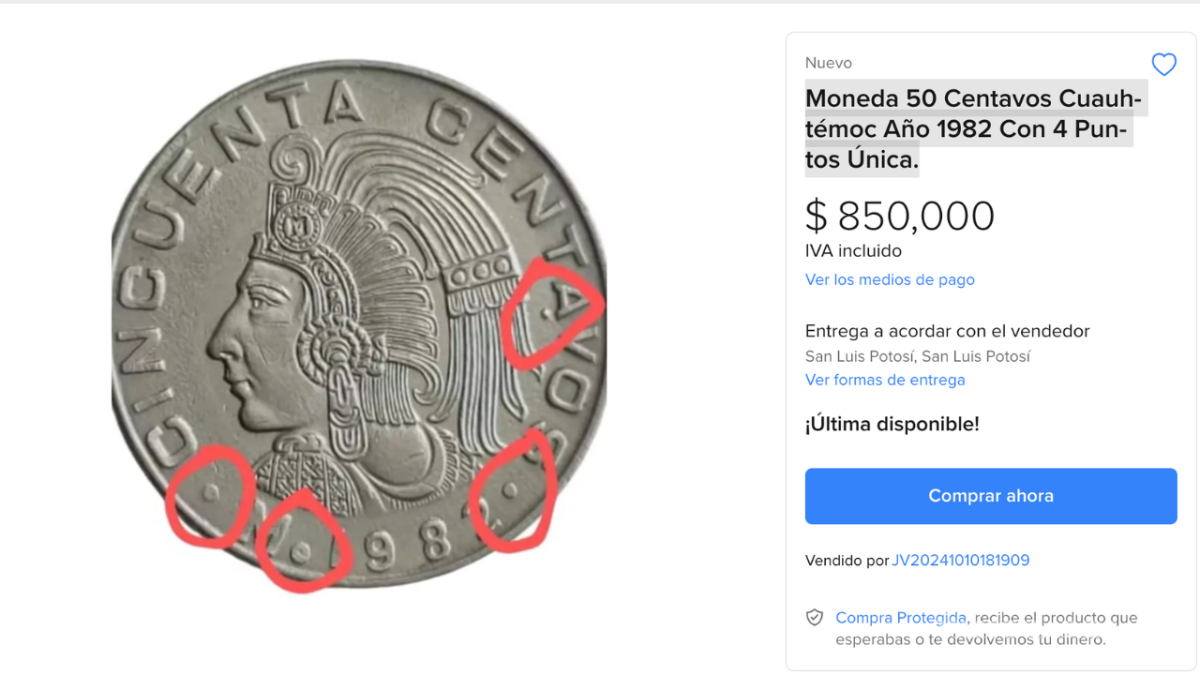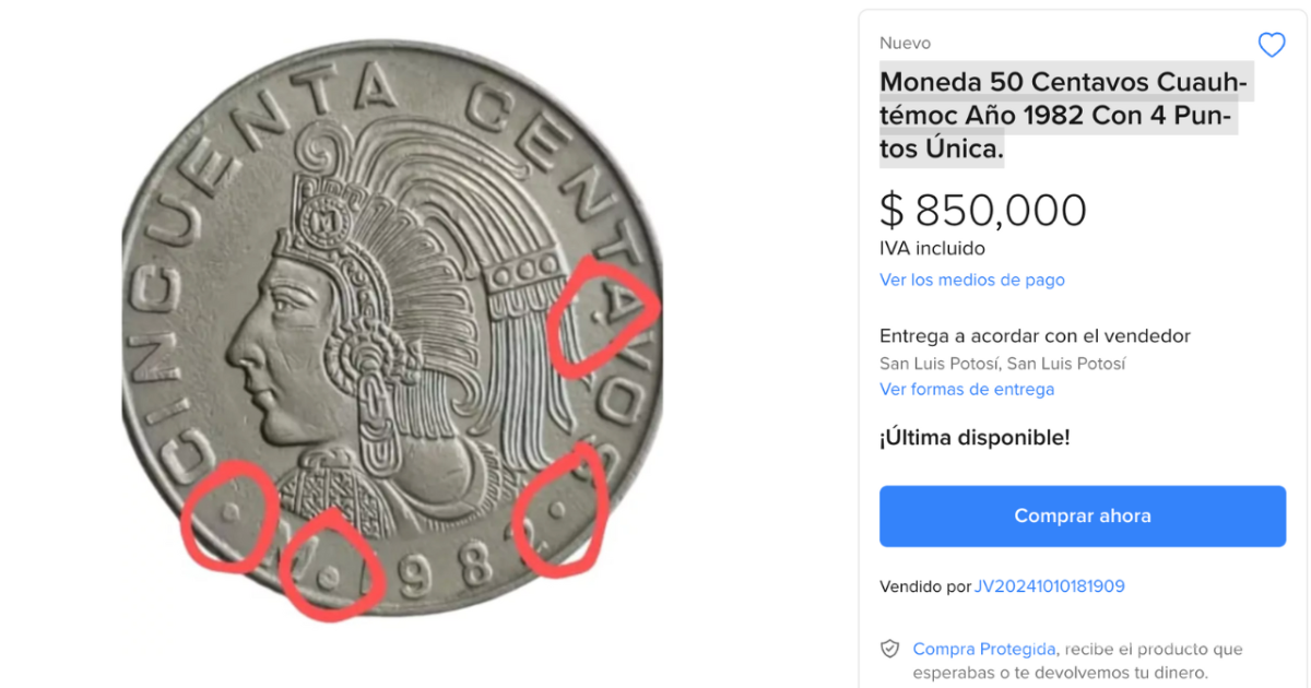 Descubre la moneda de 50 centavos de 1982 con cuatro puntos que se vende en 850 mil pesos