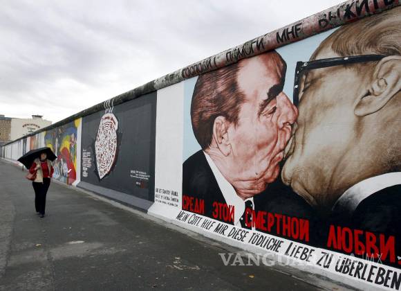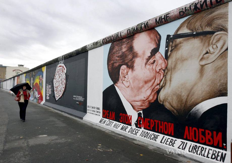 El beso protocolar que ilustró el Muro de Berlín. Protagonizado en 1979 por Erich Honecker (líder de la Alemania Oriental) y Leónidas Breznev (líder de la Unión Soviética), el beso se produjo durante la visita de éste último, en el 39 Aniversario de la República Democrática Alemana. Este beso, símbolo de la considerada “solidaridad socialista”, acabó convirtiéndose en el grafiti icónico y crítico del muro de Berlín que el propio Honecker ideó construir en 1961. Esta imagen histórica tuvo posteriores versiones, una de las más recientes quedó impresa en la lona del festival Primavera Sound de 2022, protagonizada por Pep Guardiola y José Mourinho, como símbolo del hermanamiento Madrid/Barcelona.