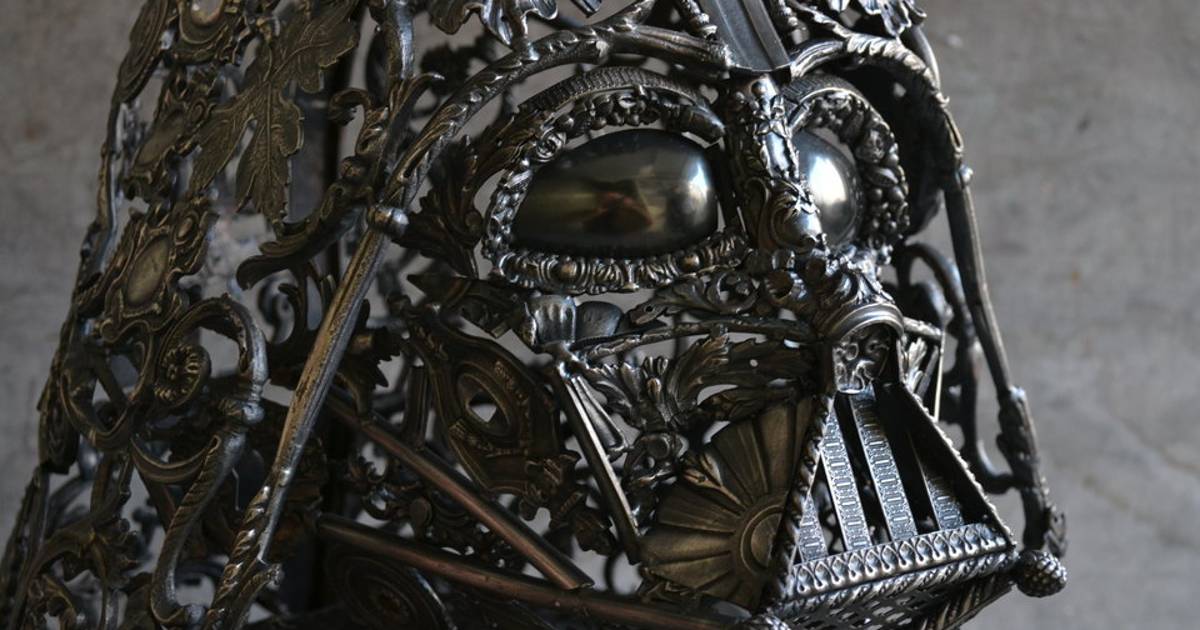 El escultor francés Alain Bellino tiene una amplia cartera de esculturas de metal con algunas referencias de ciencia ficción, pero en este caso la del villano de Star Wars es bastane increible