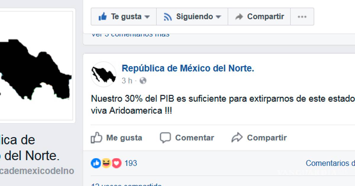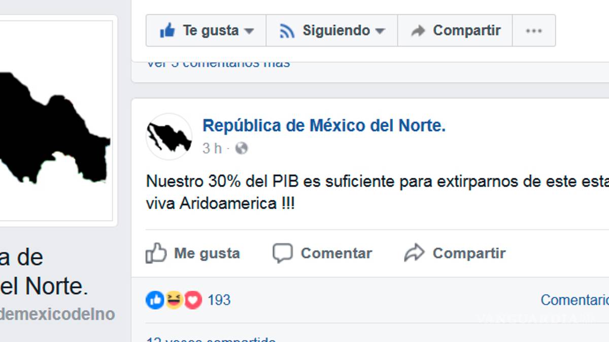 En una FanPage de Facebook denominada "República de México del Norte" el administrador expone que el " 30% del PIB es suficiente" para el Norte del país, por lo cual los estados podrían subsistir y crear así una nueva nacionalidad, un "norte independiente del centro".