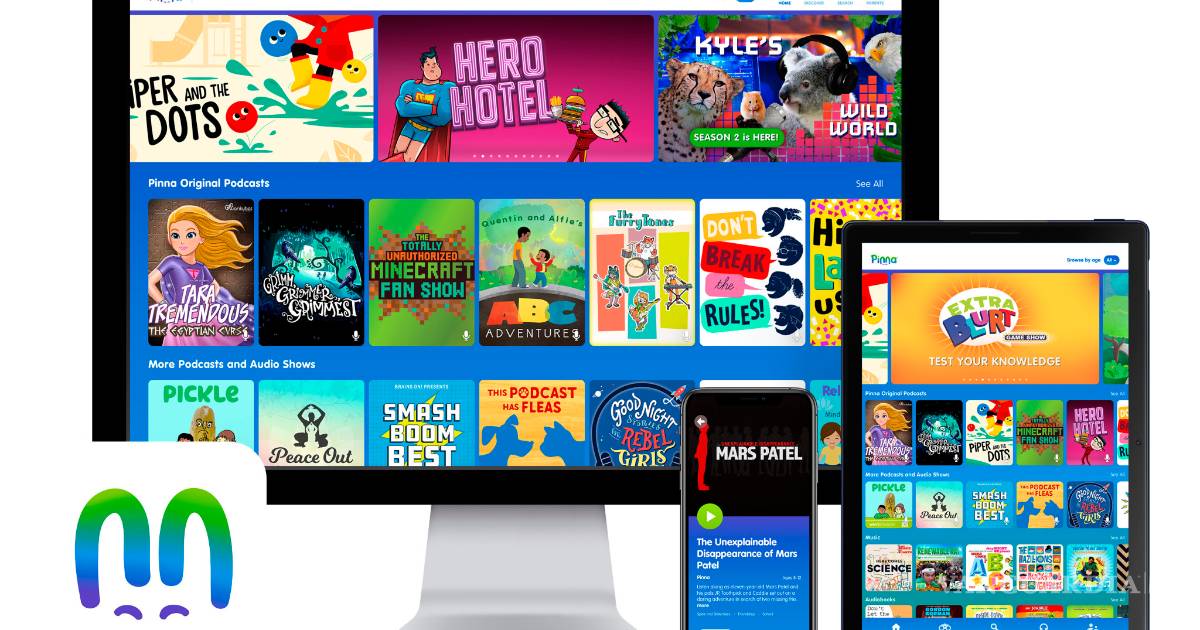 Pinna organiza y también crea sus propios contenidos para niños entre las edades de 3 y 12 años. Ofrece más de 2,000 audiolibros, podcasts y canciones.