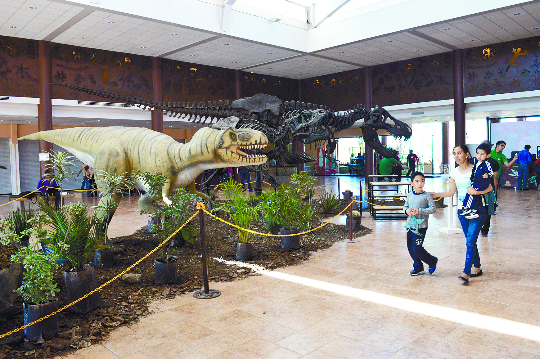 En la explanada del MUDE nos recibe el ya típico tiranosaurio rex que a la vez las hace de fondo para las fotos con los visitantes quienes se la ingenian para encontrar el mejor ángulo con su selfie stick o para utilizarlo como sombra.