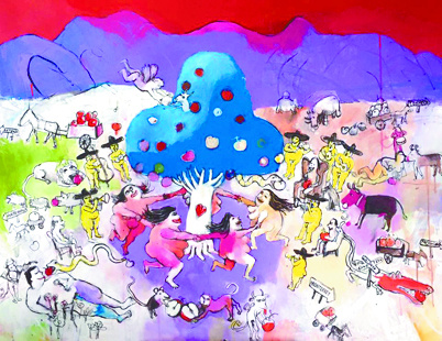 Castillo también resaltó la variedad de formatos que hay, lo que permitirá que algunas de las pinturas tengan precios más accesibles y puedan ser adquiridas por un público más amplio. Están las de gran formato, por ejemplo, la principal, que es un primer cuadro de la ciudad, sin sus emblemáticos edificios para darle este tono virginal del paraíso, y que mide casi el metro y medio de largo y ancho. Pero también hay pequeñas pinturas de 30 x 30 cm.