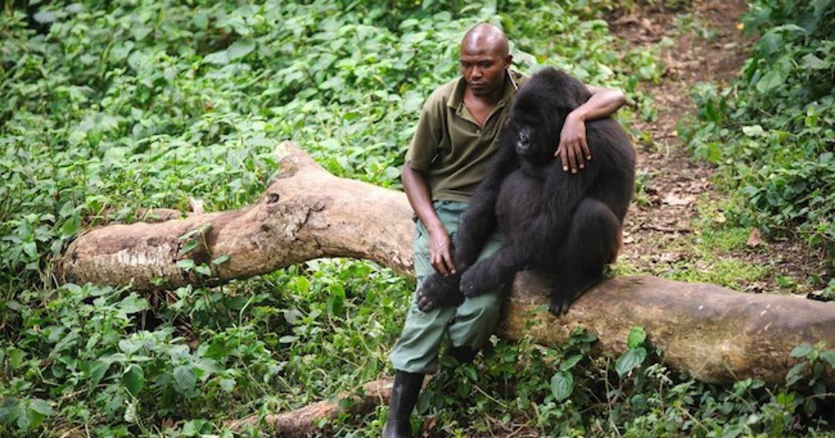 Los esfuerzos de conservación han derivado en logros recientes para restaurar la población salvaje de gorilas, pero, como podemos ver en las expresiones de tristeza del gorila y el guarda parques, aún hay mucho por hacer.