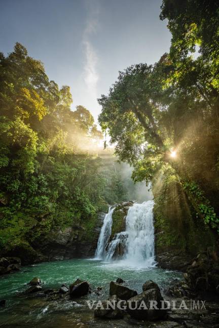 La ruta pasa por las cataratas Nauyaca, una cascada de dos niveles que crea una piscina natural en el río Barú.