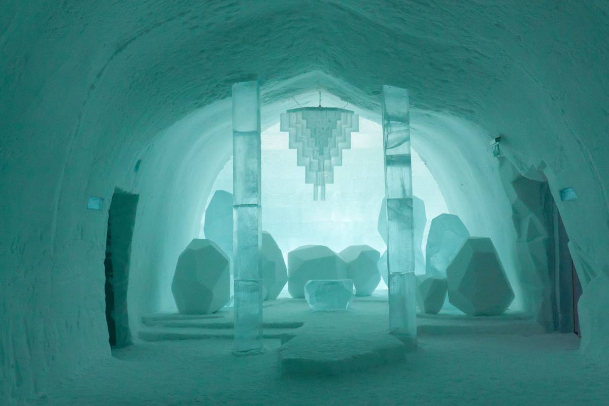 > En la villa sueca de Jukkasjärvi, a 200 kilometros del círculo polar, cada temporada invernal se erige un hotel efímero. El Ice Hotel está construido enteramente de hielo y es un diseño nuevo cada año, luego de que se derrita con la llegada del verano.