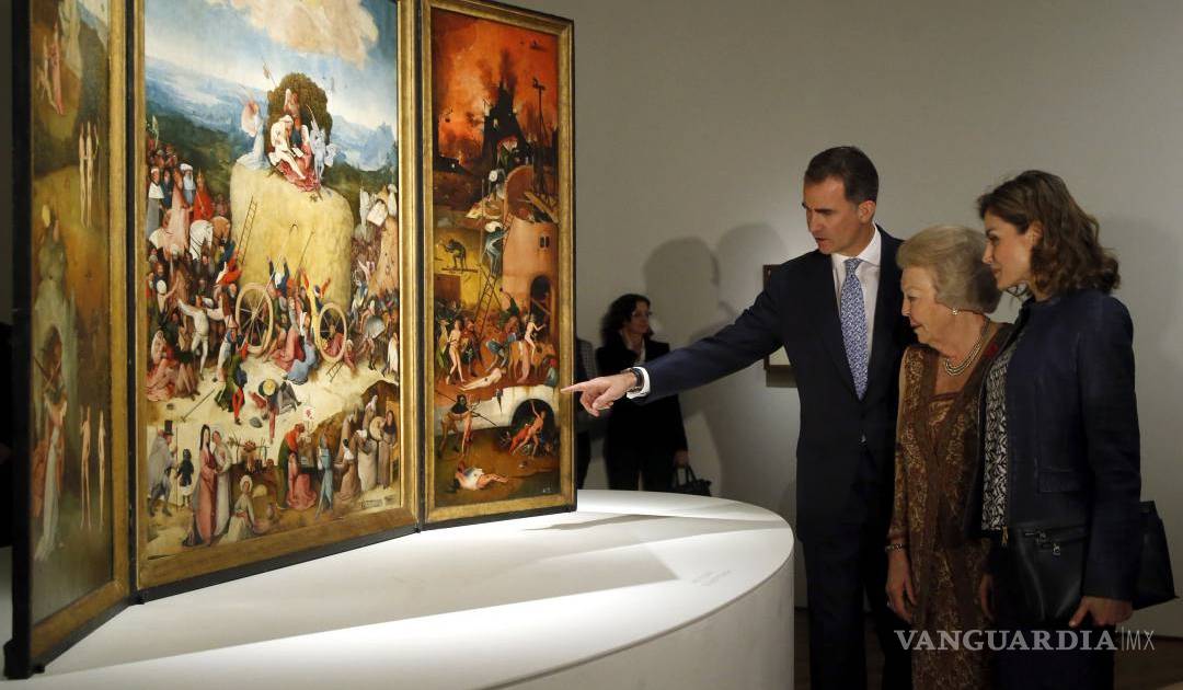 Los reyes Felipe VI y Letizia inauguraron hoy, junto a la princesa Beatriz de Holanda, la gran exposición sobre El Bosco con la que el Museo del Prado de Madrid conmemora el V centenario de la muerte del enigmático pintor.