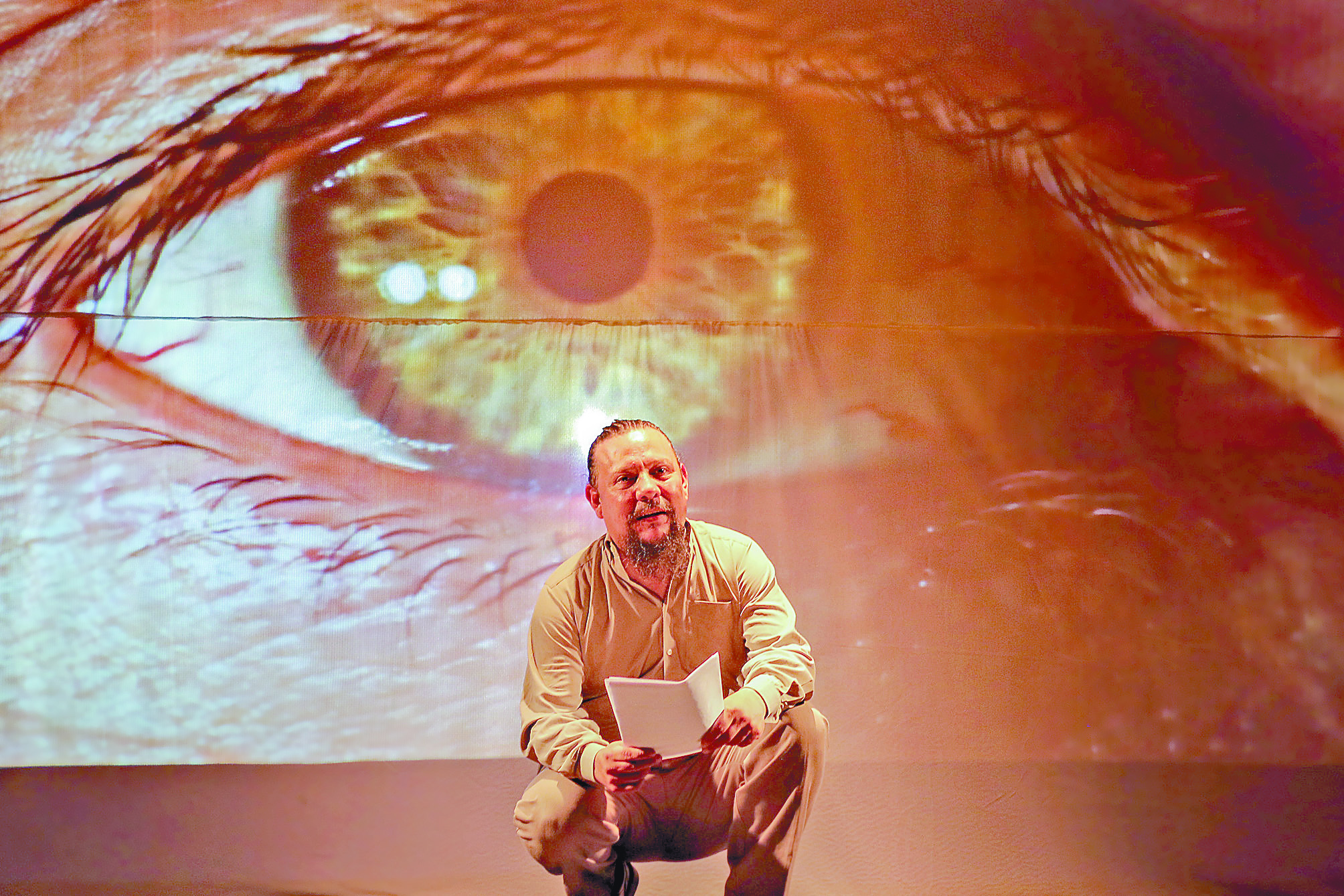 Aunado a lo anterior, la puesta también utiliza contenido multimedia para apoyar en la dramatización.