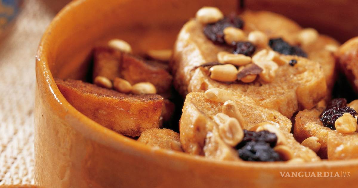 Esta especie de budín se hace con una serie de capas de pan previamente rebanado, rebosado en manteca de cerdo y remojado en almíbar de piloncillo especiado. Para coronar se agrega queso (generalmente Cotija) que da equilibro al dulzor. Aunque parezca una mezcla difícil al gusto, resulta una buena idea.