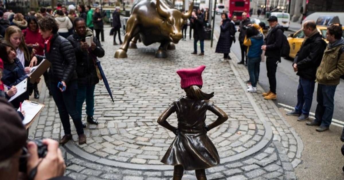 Popularmente bautizada ya como The fearless girl ("La niña sin miedo"), la cría con minifalda ha sido colocada por un fondo de gestión que se llama State Street y mueve activos por valor de 2,5 billones de dólares, lo que equivale a dos veces la economía española. En un comunicado, la firma instó a las empresas a incorporar a más mujeres en los Consejos de Administración y recalcó que las compañías con diversidad de género en su dirección son más rentables.