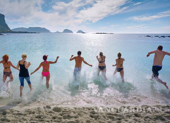 Mujeres posan en la playa con tops de bikini y tangas, G-string o brasileñas, sonriendo y levantando sus brazos. Hoy, las tangas, G-string y otros estilos que ‘dejan poco a la imaginación’ son aceptados por mujeres de todas las formas y tallas
