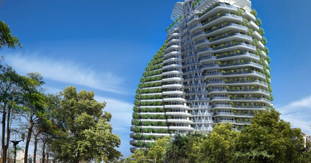 -- “Esta torre antisísmica dispondrá de 23,000 árboles y arbustos plantados en el suelo y los balcones, capaces de absorber toneladas de CO2, como si fuera un bosque urbano”, señala Callebaut desde Paris.