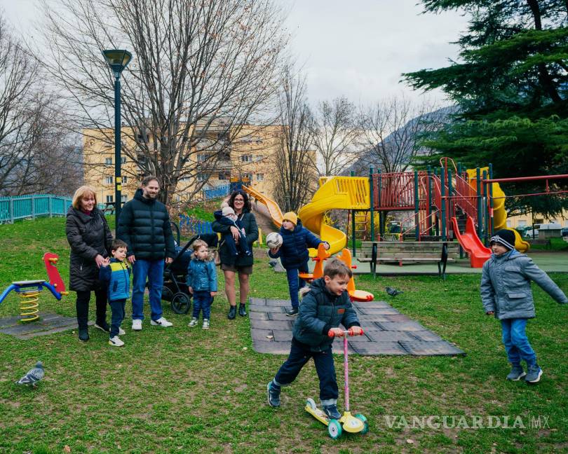 La familia Baldo dijo que el apoyo de la provincia era sumamente importante para ellos. Mientras un pastel crecía en el horno, Rubén, de 2 años, tocaba una canción infantil, mientras sus hermanos Beniamino, de 5, y Gioele, de 4, mostraban las verduras de plástico de su cocina de juegos. Sus padres, sentados junto a una caja registradora de juguete, explican que, como todos los padres de la provincia, reciben 200 euros al mes por cada uno de sus seis hijos hasta que cumplen 3 años.