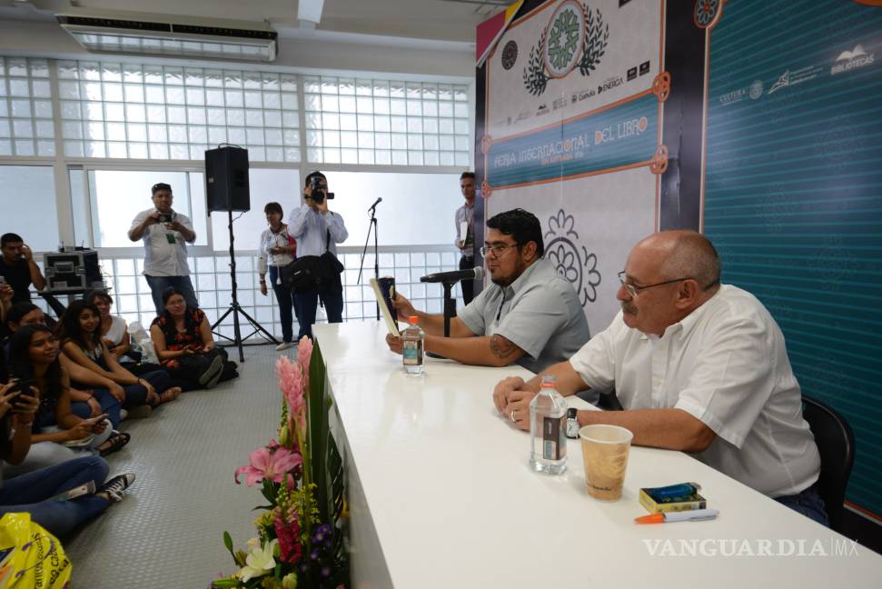 Atiborran la sala en un santiamén: llenan las sillas, y los pasillos laterales, se sientan en el piso, ocupan el lugar vacío entre la mesita de conferencias y el público; se hacen un espacio en medio de la nada con tal de estar presentes. Nadie se quiere quedar fuera, ni siquiera Valeria García Fierro, booktuber saltillense, que esa misma tarde celebraría sus XV y se las ingenió para asistir a la conferencia.
