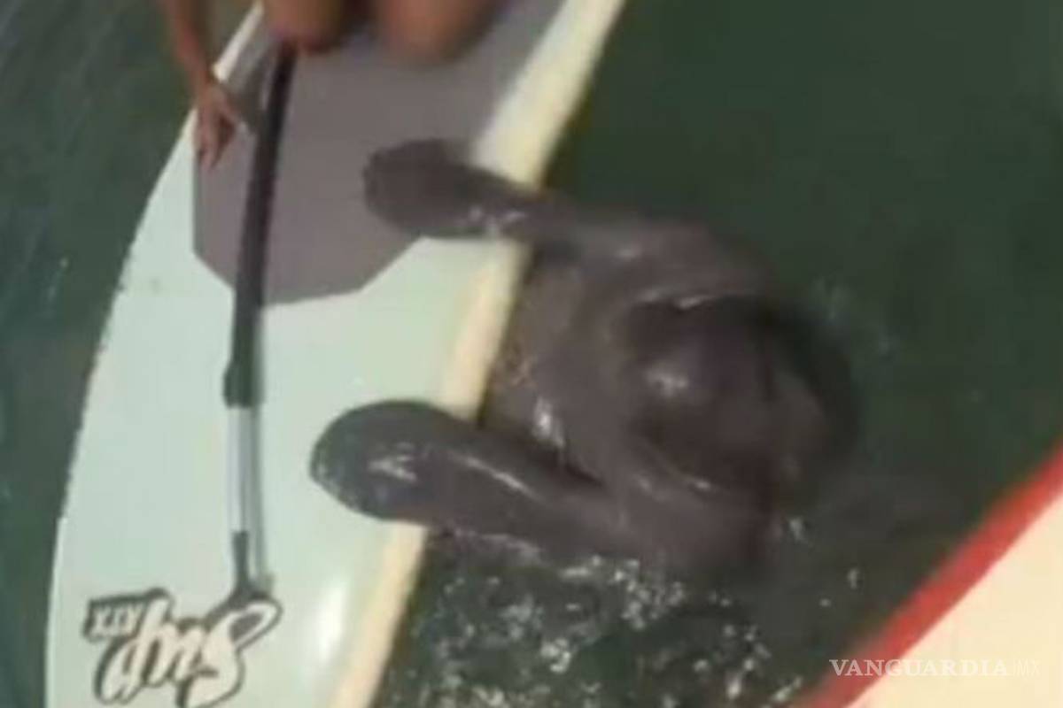Manatí sorprende a surfista en Florida (Video)