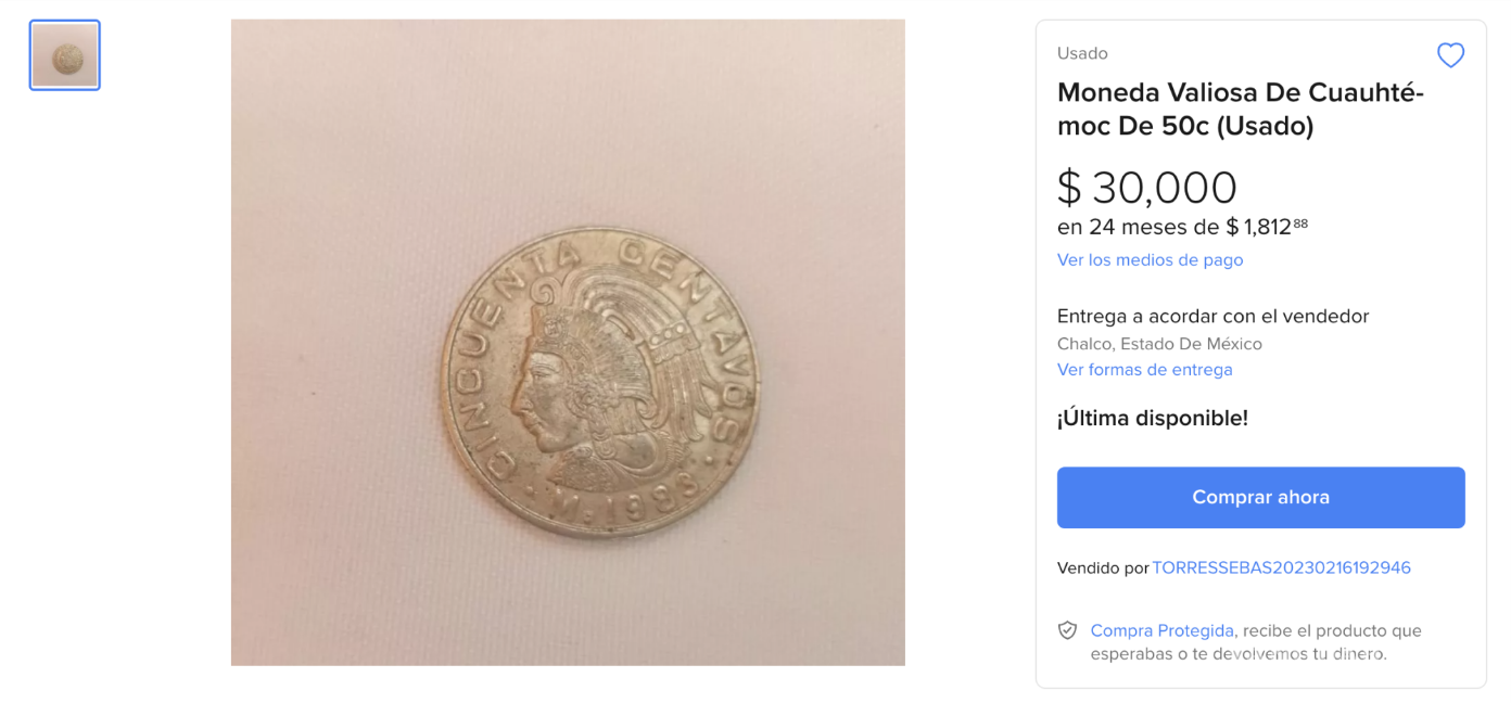 El alto valor de esta moneda en plataformas como Mercado Libre, donde llega a ofertarse hasta por 30 mil pesos, radica en varios factores: