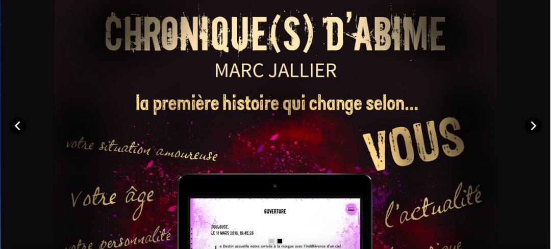 Hecho esto, puede empezar a leer la novela policiaca Chronique(s) d'abîme" ("Crónica(s) del abismo"), que presenta su primer capítulo adaptado a la hora y la ciudad del lector, aunque por ahora solo se encuentra en versión francesa.