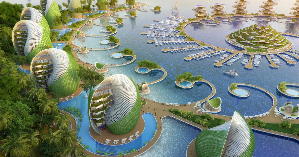 Este complejo,  al que se accederá mediante veleros o botes eléctricos con fondo plano para limitar el impacto ecológico de las infraestructuras viales, albergará una isla central con un centro náutico y  laboratorios de investigación científica bajo un gran techo vegetal, de acuerdo a VCA.