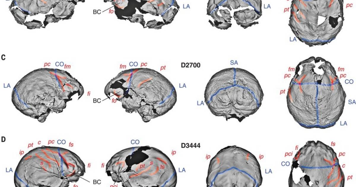 Un equipo de antropólogos analizó en cráneos fósiles del yacimiento de Dmanisi (Georgia) las huellas dejadas por sus cerebros y descubrió que este órgano en los Homo más antiguos aún conservaba una organización primitiva del lóbulo frontal similar a la de un gran simio.