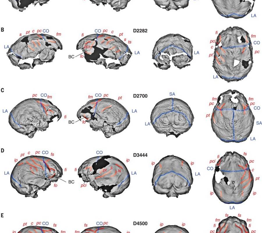 El equipo utilizó una colección de cráneos fósiles de Homo bien conservados procedentes del yacimiento de Dmanisi (Georgia), de entre 1.85 y 1.77 millones de años, y una muestra comparativa de otros procedentes de África y el sudeste asiático.