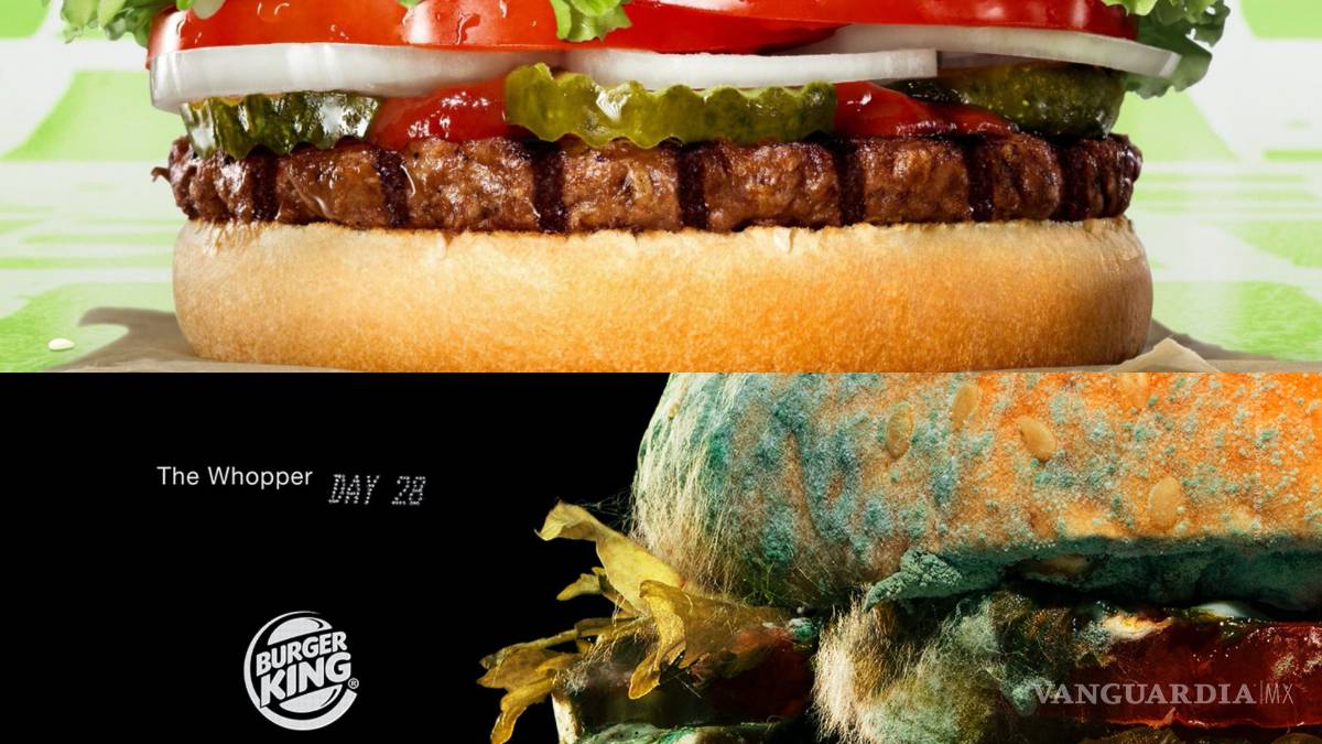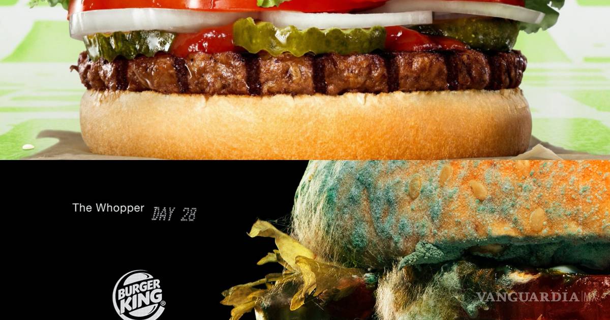 Burger King mostrará fotos de su Whopper cubierta en moho en anuncios impresos y televisados en Europa y Estados Unidos. Su mensaje es: que Burger King eliminará los conservadores artificiales de su famosa hamburguesa.