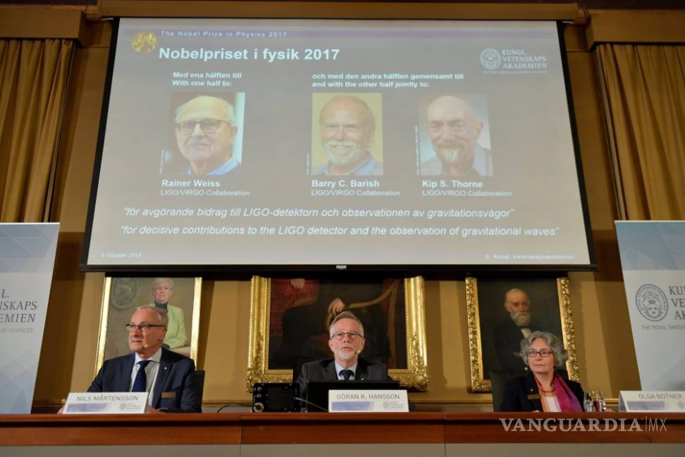 El Premio Nobel de Física fue concedido hoy a los estadounidenses Reiner Weiss, Barry C. Barish y Kip S. Thorne por la confirmación directa de la existencia de las ondas gravitacionales predichas por Albert Einstein hace un siglo, informó hoy la Academia Real Sueca.
