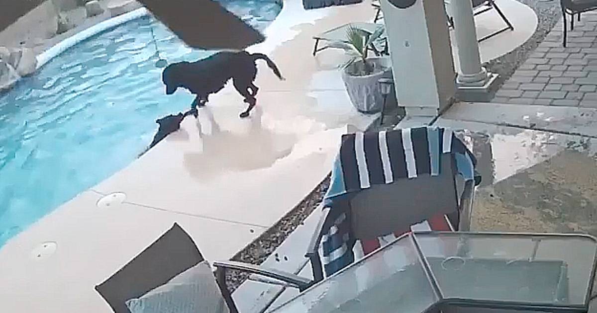 En el video que fue inicialmente compartido a través de Facebook muestra cómo Remus, trota junto a una piscina en la que Smokey intenta mantenerse a flote, pero no lo consigue.