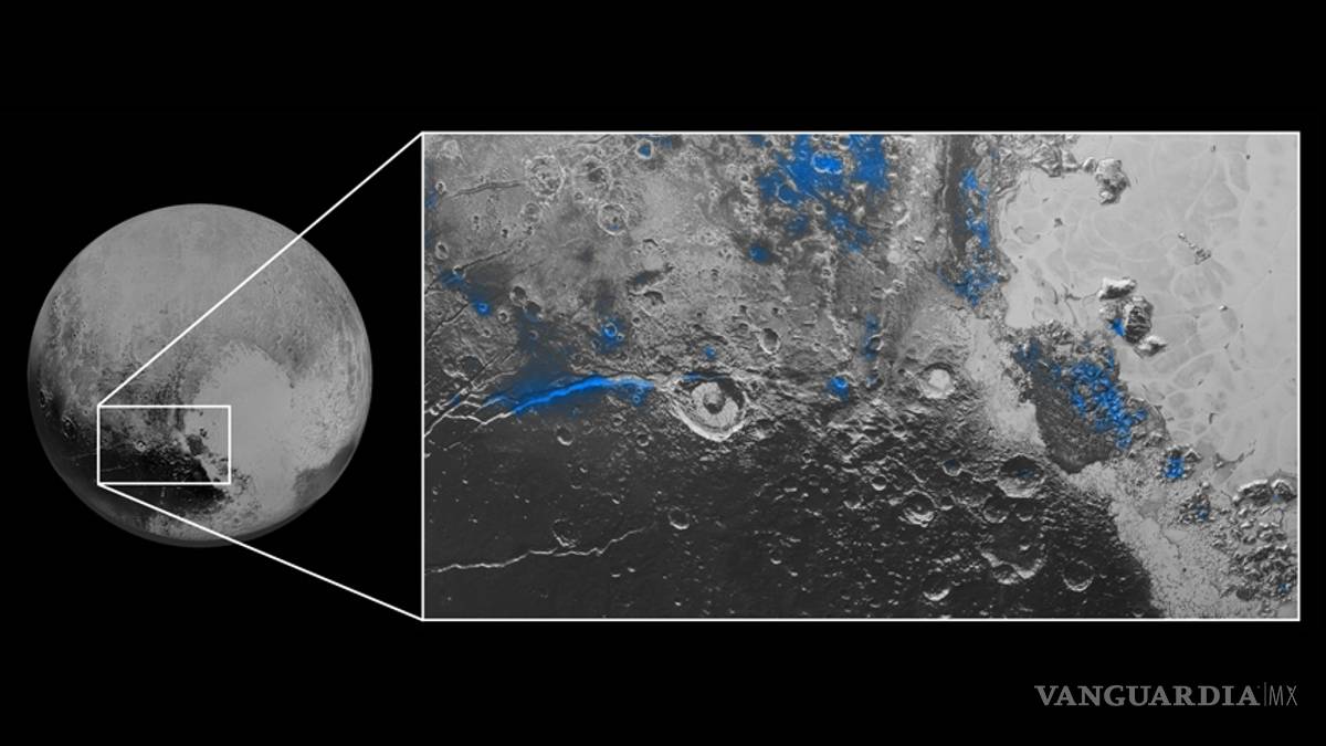 Las imágenes recopiladas por la nave de New Horizons, que actualmente está a 3,100 millones de millas de la Tierra, también demuestran numerosas regiones pequeñas de agua congelada.