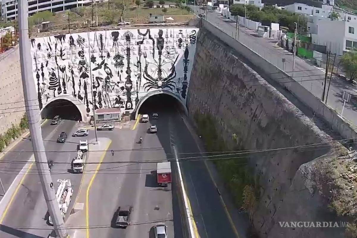 Esqueletos, murcielagos y arañas gigantes conforman el mural de 60 por 20 metros ubicado en la entrada del tunel de la Loma Larga en San Pedro. Y aún sin ser inaugurado, ya ha sido fuertemente criticado en redes sociales.