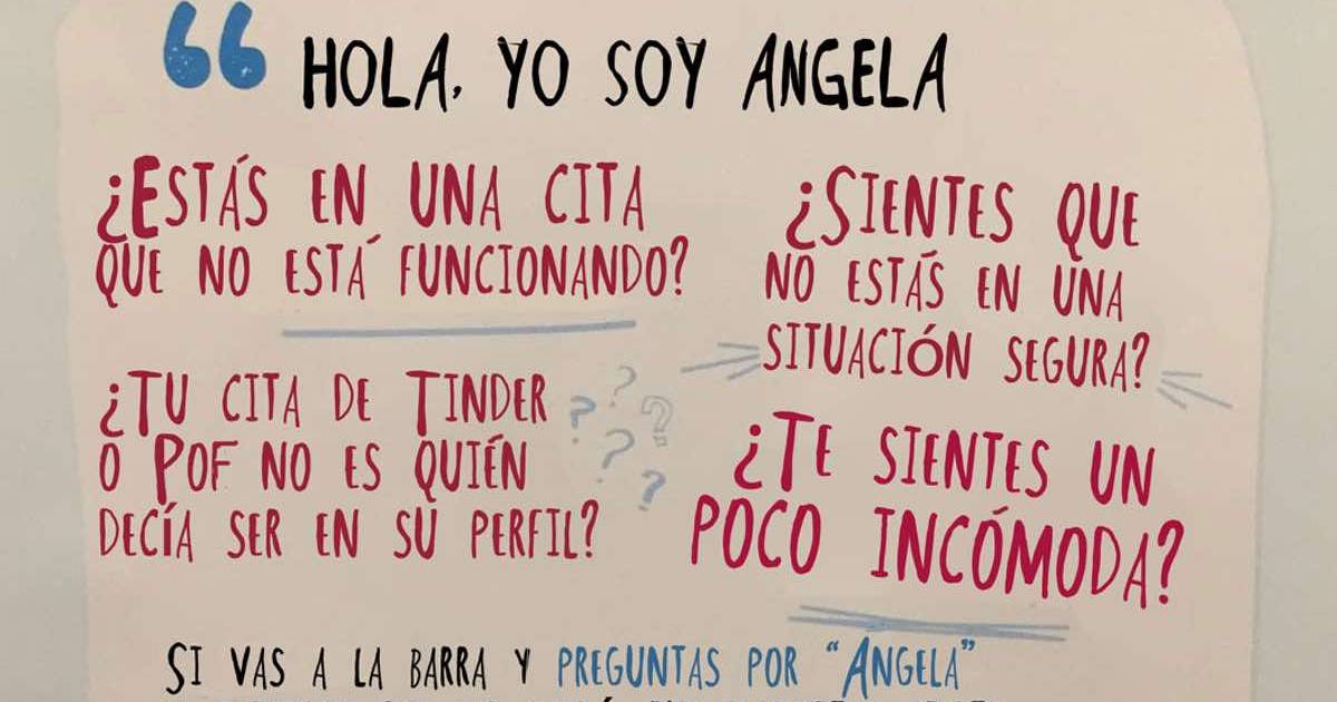 “¿Estás en una cita que no está funcionando? ¿Tu cita de Tinder no es quién decía ser en su perfil? ¿Sientes que no estás en una situación segura? ¿Te sientes un poco incómoda? Si vas a la barra y preguntas por “Angela”, el personal del bar sabrá que necesitas ayuda y te facilitará opciones para salir del lugar, llamará a un taxi o te ayudará discretamente, sin mucho alboroto”.