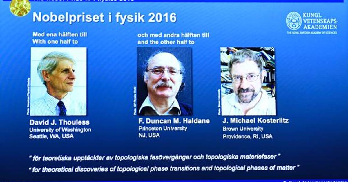 El Premio Nobel de Física 2016 ha sido concedido, ex aequo, a David J. Thouless, por un lado, y a F. Duncan Haldane M. y J. Michael Kosterlitz, por otra, por revelar los "secretos exóticos de la materia". En el fallo se destaca que el galardón se les concede "por los descubrimientos teóricos de las transiciones de fase topológica y fases topológicas de la materia". Las transiciones de fase suceden cuando la materia cambia de fase, como cuando el hielo se derrite y se convierte en agua o el agua se evapora.