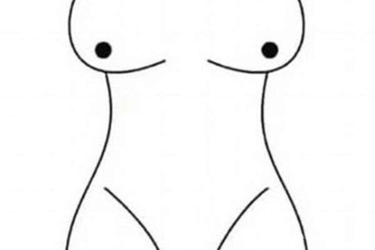 Así, en la imagen se puede apreciar tanto a una mujer desnuda, como a dos hombres con los brazos extendidos, en una posición que simula un baile.