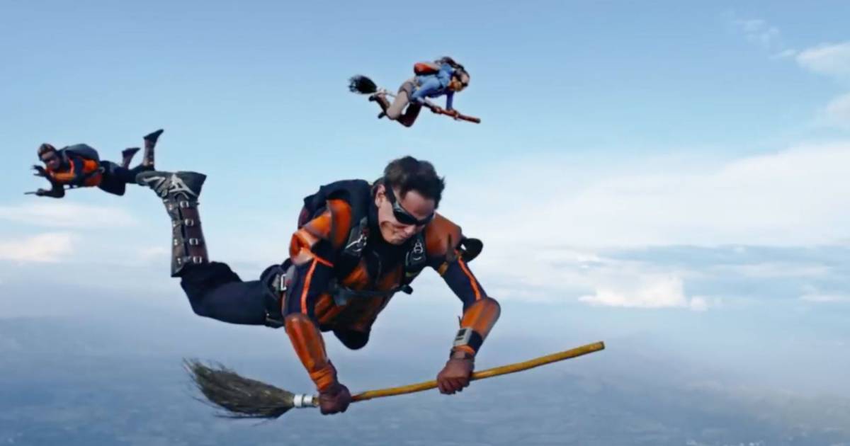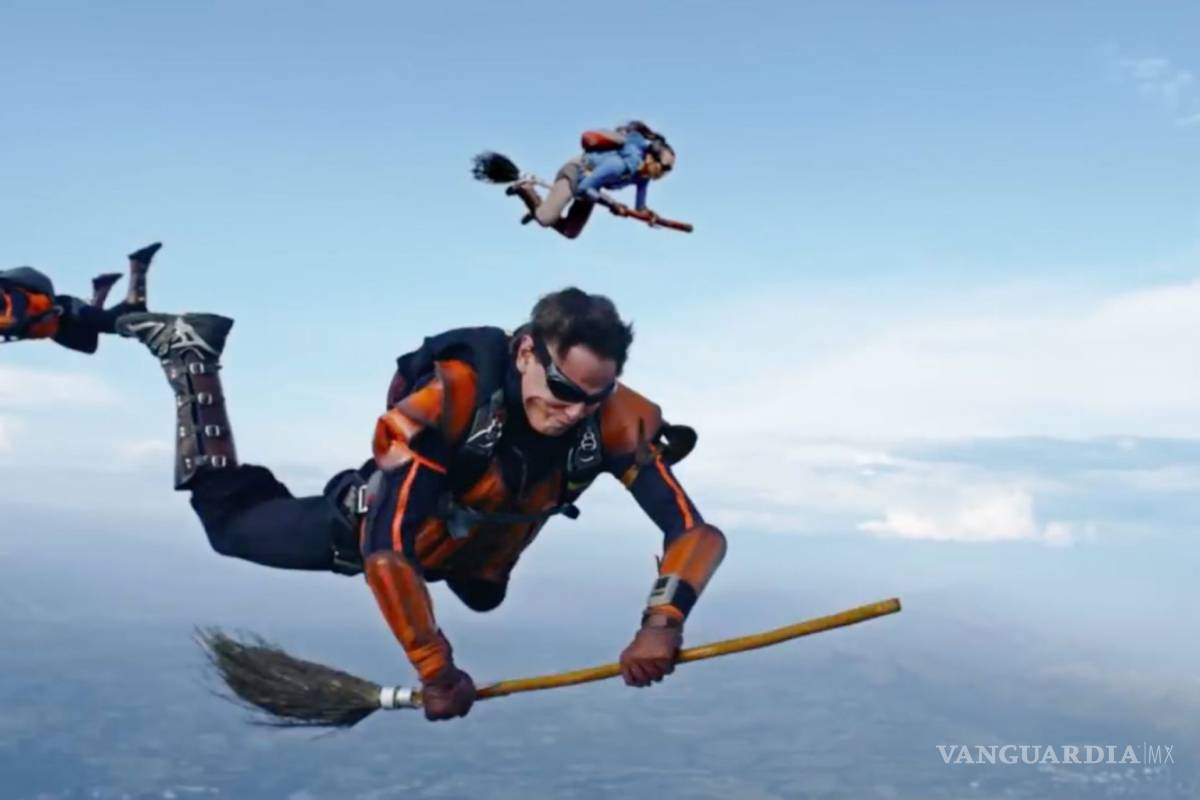 La hazaña fue posible cuando los fanáticos saltaron de una avioneta con paracaídas y sus escobas con los que emularon el vuelo fantástico.