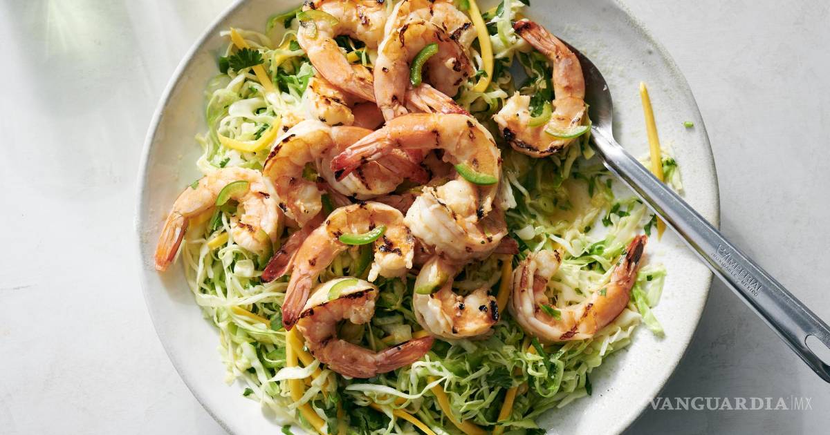 Receta: Camarones a la parrilla con ensalada de repollo picante