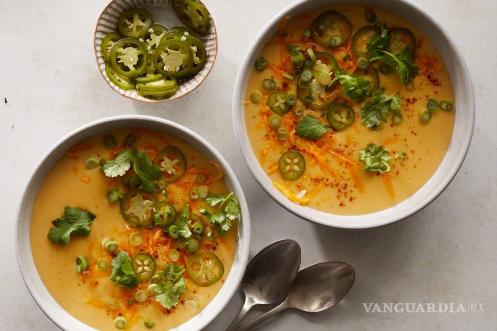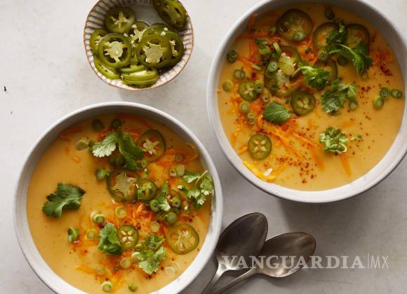 Receta: Sopa de papa y queso cheddar con jalapeños encurtidos al momento