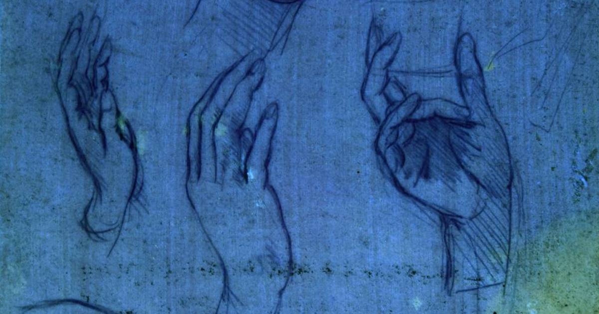 A simple vista parecen un papel viejo en blanco, pero bajo la luz ultravioleta se puede apreciar más de una docena de esbozos de manos dibujadas por Leonardo Da Vinci. Los dos trozos de papel, que ahora se sabe que formaron parte del estudio preliminar del artista para pintar la famosa obra “La Adoración de los Magos” (1481), se exhibirán al público por primera vez en la Galería de la Reina, en el Palacio de Buckingham, con motivo del 500 aniversario de la muerte del artista florentino.