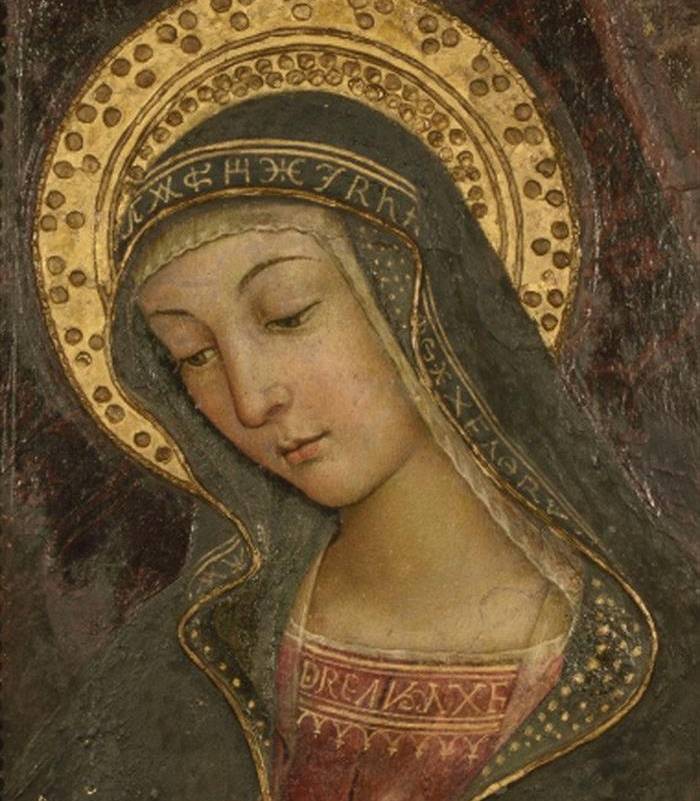 Es la primera vez que se expone al público el fragmento de la obra original que representa a la Virgen, y se puede ver junto al otro fragmento, en el que Pinturicchio representó al Niño Jesús; la parte del cuadro original que representaba al papa desapareció.