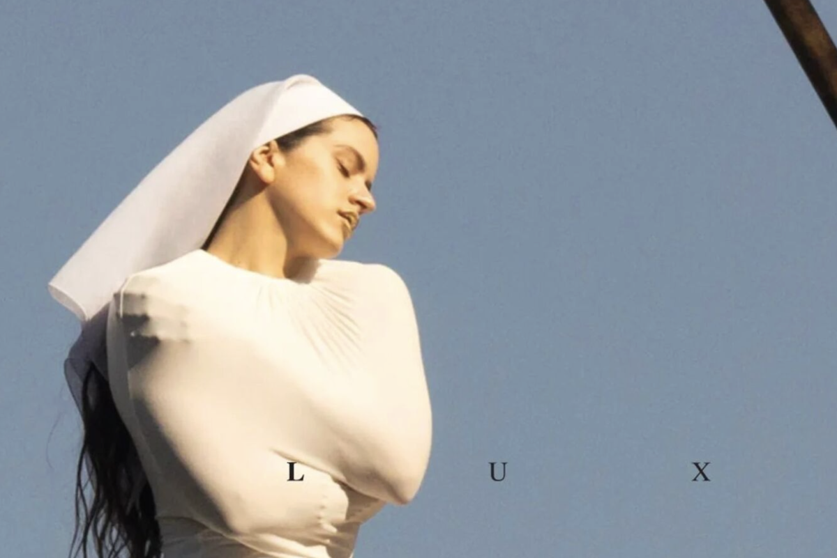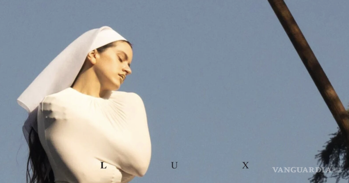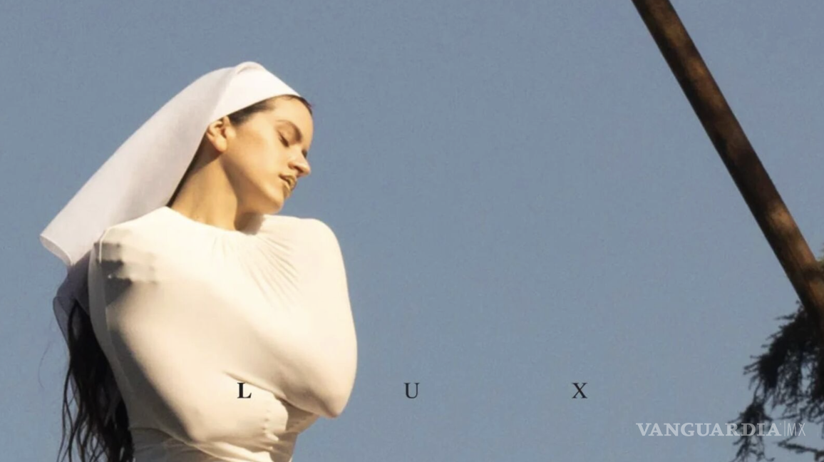La imagen de la portada del disco ‘Lux’ presenta a la artista con una pieza blanca inspirada en el hábito de una monja, con un velo y elementos de una camisa de fuerza y un halo que evocan un misticismo moderno.